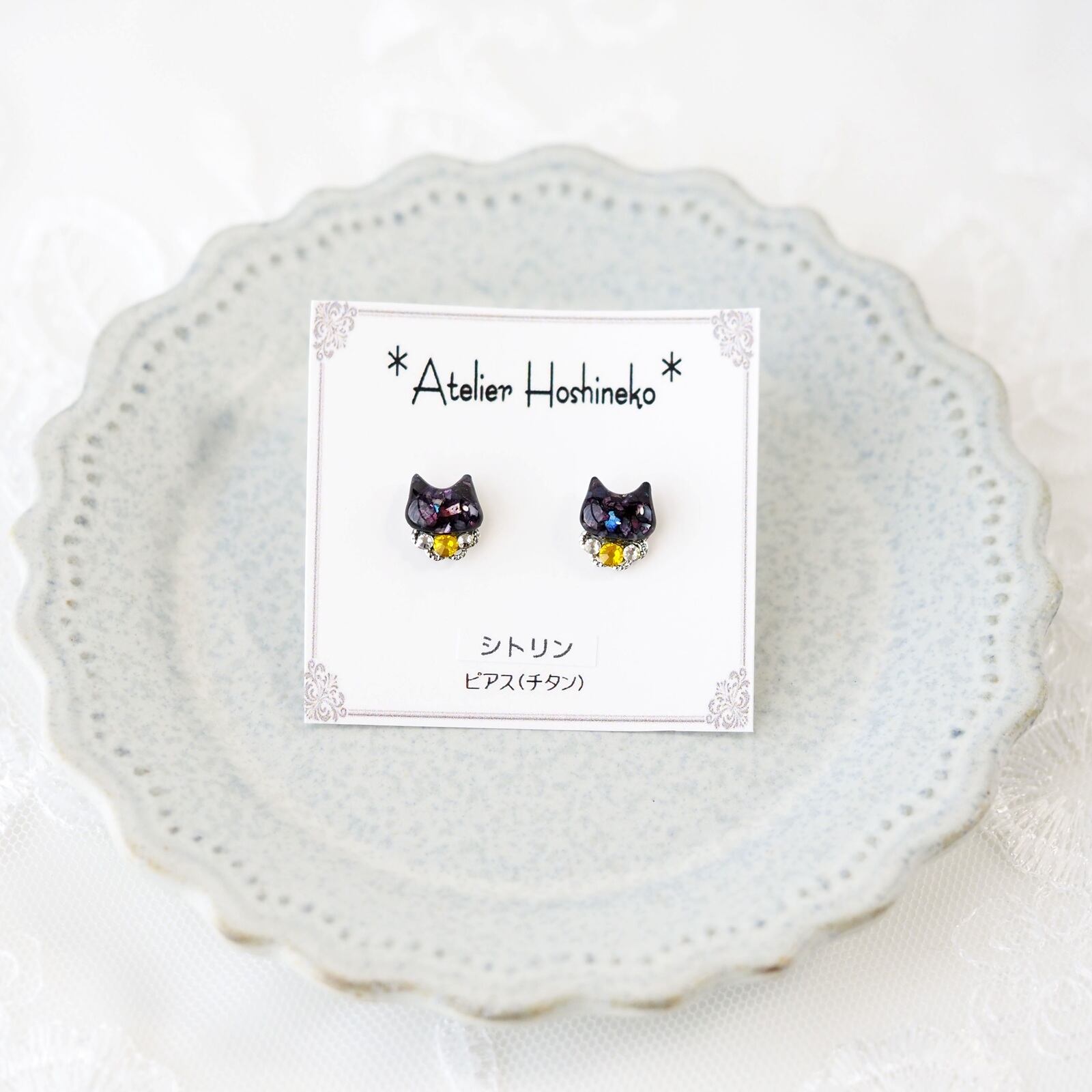 猫は白猫と黒猫の2種類から、アクセサリー金具はピアス(チタン)と