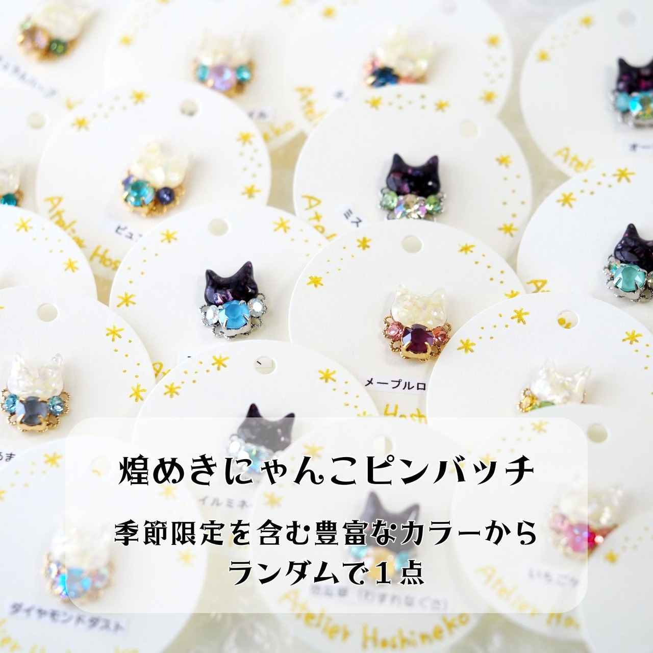 ・煌めきにゃんこシリーズ(季節限定を含む)のピンバッチの中からランダムで1点