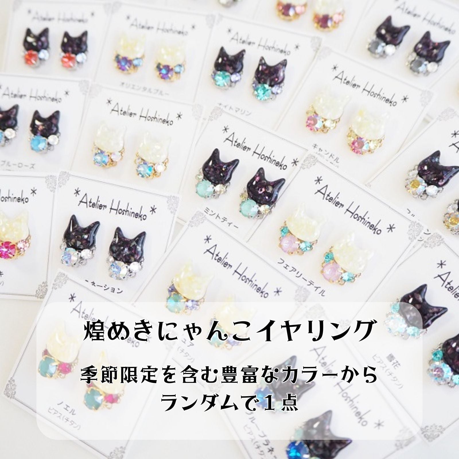 ・煌めきにゃんこシリーズ(季節限定を含む)のイヤリングの中からランダムで1点