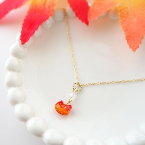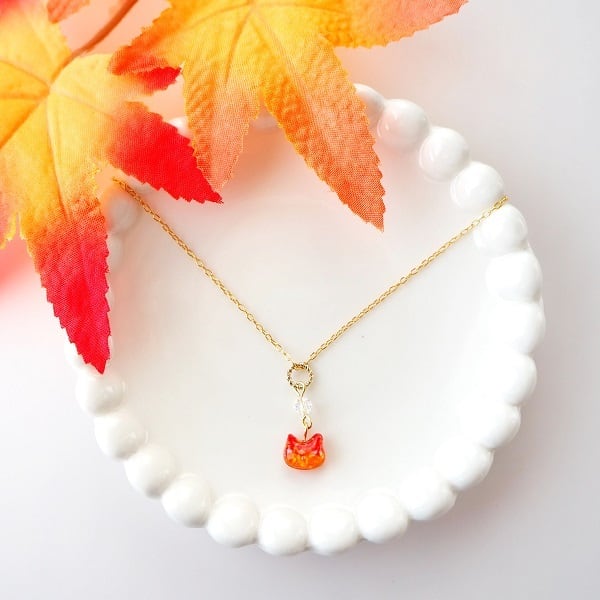 小さな猫に秋の情景を閉じ込めた、可愛らしく揺れるペンダントです。